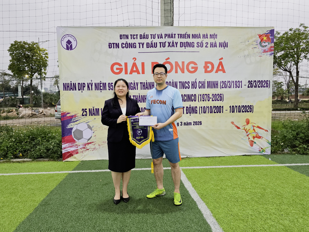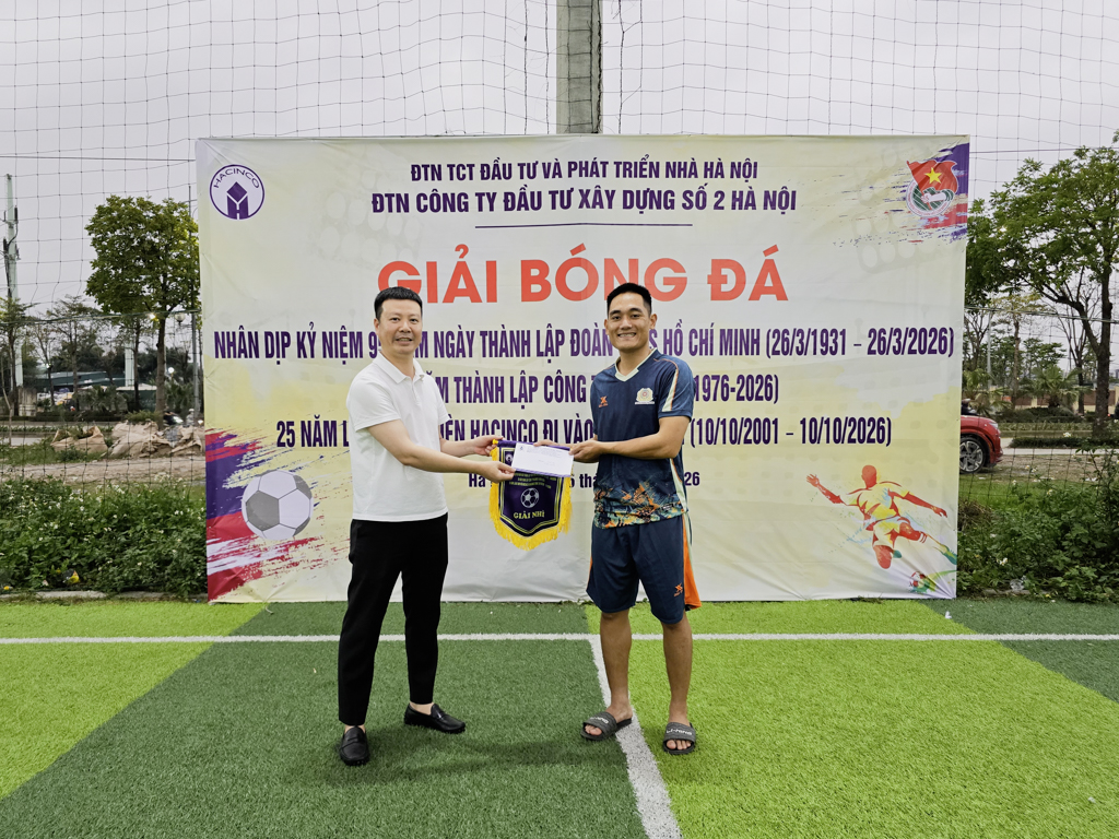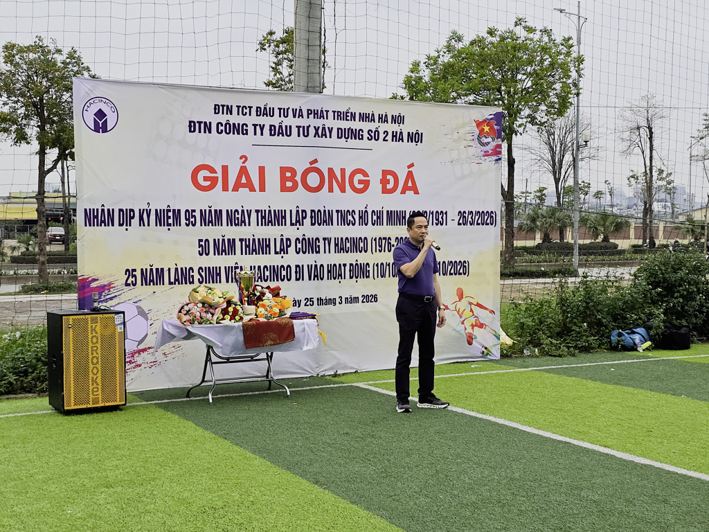 Nằm trong chuỗi các hoạt động chào mừng kỷ niệm 50 năm thành lập Công ty (1976 – 2026), 25 năm Làng sinh viên HACINCO đi vào hoạt động (10/10/2001 – 10/10/2026), chiều ngày 25/3/2026 Đoàn Thanh niên Công ty Đầu tư Xây dựng số 2 Hà Nội - HACINCO đã long trọng tổ chức Giải bóng đá chào mừng kỷ niệm 95 năm ngày thành lập Đoàn TNCS Hồ Chí Minh (26/3/1931 - 26/3/2026).